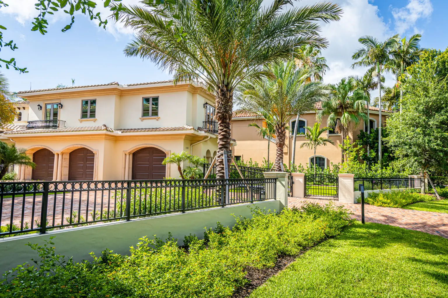 To enhance flow and functionality, a dedicated golf cart path was introduced along the right side of the property, seamlessly connecting the front approach with the rear garage. A new front entry wall and pedestrian gate provide both definition and elegance, framing the courtyard with a sense of enclosure while maintaining a warm welcome.
