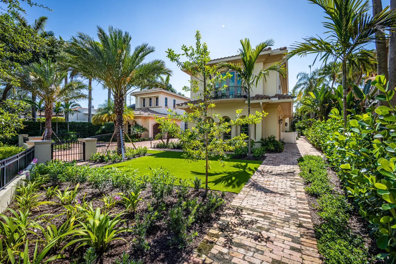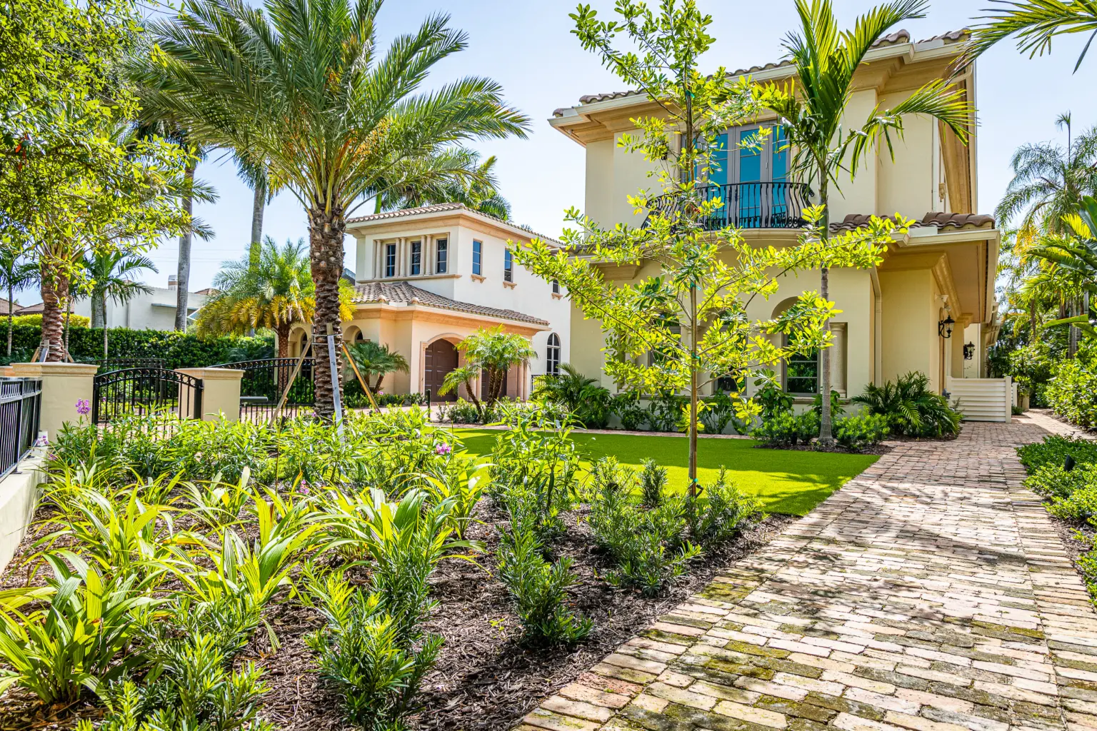 The project’s signature statement lies in its custom front wall and gated courtyard, which establish a refined threshold while navigating strict setback and easement requirements. This architectural element not only grounds the home visually but also enhances privacy and arrival experience. Though understated by intent, the final composition delivers a polished transformation—proof that even subtle landscape refinements can elevate a property’s entire presence.